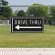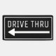 Conduzca o conduzca a través de un signo con una flecha blanca sobre negro.