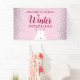 Bienvenidos invitados a una mágica celebración del primer cumpleaños con este dulce banner de fiesta de Winter ONEderland. Con nieve con apariencia de purpurina rosa y puntos blancos que caen, y un adorable conejo asomando desde la parte inferior, este encantador diseño es ideal para el evento con tema invernal de su pequeña. Personalice con el nombre de la cumpleañera y la fecha. Perfecto como fondo para mesas de postres, fotos o entradas de fiesta.
