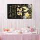 Un moderno cartel de bienvenida fiesta con un brillante y brillante dorado aniversario, con tostadas de champán, globos, confetti purpurina de oro y fuegos artificiales de oro sobre un fondo negro con un elegante estilo de escritura moderno. Globos de oro en la forma del número 25. Llamativo y atrevido y purpurinoso estilo.