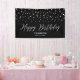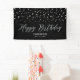 Este sencillo diseño de banner de cumpleaños incluye elegantes letras de guión "Cumpleaños feliz" con fondo de confeti de forma hexagonal. Decoración fiesta perfecta para una fiesta de cumpleaños moderna de temática negra y plateada. En mi tienda BaraBomDesign hay más invitaciones y suministros de fiesta a juego.