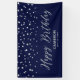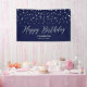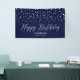 Este sencillo diseño de banner de cumpleaños incluye elegantes letras de guión "Cumpleaños feliz" con fondo de confeti de forma hexagonal. Decoración fiesta perfecta para una moderna fiesta de cumpleaños de temática azul oscuro y plata. En mi tienda BaraBomDesign hay más invitaciones y suministros de fiesta a juego.