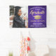 Add a personalized touch to college or high school graduation party decorations with this custom photo purple, gold, and white banner.  Design features a purple faux brushed stainless steel background, gold foil look mortar board, stylish modern typography, handwritten style script calligraphy, and one photo of the graduate, such as a senior picture or image from the commencement ceremony.  Please note that gold is printed color, not metallic foil. This party sign is an elegant way to celebrate the special day. Congratulations to the graduate!