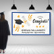 Celebra tu graduación con este impresionante banner de alta calidad que incluye un gorro de graduación y gráficos de diploma y tu texto personalizado. Añade el nombre de tu graduado, clase de año, secundaria/universidad o el texto de tu personalizado. Cambia fácilmente el color de fondo para coordinarlo con los colores de la escuela, sólo tienes que hacer clic en el personalizar y bajar al selector de color. El cartel es una buena forma de recibir a los clientes en tu fiesta de graduación y el gran tamaño hace una declaración. ¡Tu graduación se sentirá muy especial con este cartel de felicitaciones Grad!