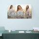 Add an elegant customized touch to graduation party decorations with a large 3 photo collage "Congratulations Graduate" banner. The pictures and wording on this template are simple to personalize. The colors, font styles and overlay opacity can be easily customized with the Zazzle Design Editor tool. The modern minimalist black and white design features trendy script calligraphy and bold classic typography overlayed with three photos of your choice, such as senior pictures or images from the commencement ceremony. This graduation banner is a stylish way to welcome friends and family to a special day celebration. Congratulations to the graduate!