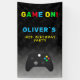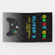Estandarte de Cumpleaños de Controlador de Videojuegos. Controlador de juegos, nombre personalizado y edad en un patrón oscuro.