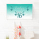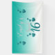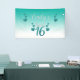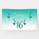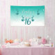 Números y corazones de purpurinas turquesa y turquesa sobre un fondo turquesa y blanco sombrío. Dulces 16. Monograma personalizado