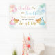Personaliza este adorable cartel de fondo de bienvenida con tu propia redacción hoy! Cuenta con 2 osos adorables para bebés y ramos de globos acuáticos. ¡Artículos coincidentes disponibles en la tienda! (c) El estudio Happy Cat Studio.