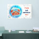 Banner de fiesta de cumpleaños para una piscina, parque acuático, playa, 1er verano o cualquier fiesta de cumpleaños infantil con un adorable cangrejo feliz con burbujas en el fondo blanco. Personaliza fácilmente el texto y disfruta de tu celebración de verano :) - Kate Eden Art