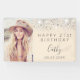 Celebrar el cumpleaños número 21 (o cualquier edad) de un chica/mujer. Un elegante fondo color crema. Decorada con polvo falso purpurina de plata. Personalice y agregue su propia foto del chica de cumpleaños. El texto: El nombre en blanco con una escritura de estilo con letras a mano moderna. Personalice y agregue un nombre, edad 21 y fecha. Se puede utilizar como banner de bienvenida o como decoración de paredes fiestas.