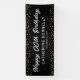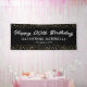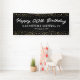 Elegante cualquier banner de fiesta de cumpleaños de edad con un elegante fondo negro que se puede cambiar a cualquier color, purpurina brillante de oro, el título 'feliz cumpleaños número 00', el nombre de las personas y la fecha de la celebración.