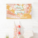 Banner retro Sunshine Four Ever Groovy cuarto cumpleaños fiesta con margaritas boho.