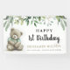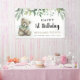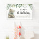 Cuídate cualquier edad boho acuarela de peluche de color verde hojas de color verde pancarta de cumpleaños. Personalizar con tu nombre y texto.