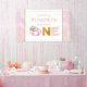 Celebra el primer hito de tu bebé este otoño con amigos y familiares para compartir la alegría de tu pequeño. Esta linda pancarta de cumpleaños presenta una calabaza rosa de acuarela con rosas de otoño, follaje verde, brillo dorado, un borde de acuarela rosa y texto de plantilla fácil de personalizar.