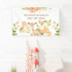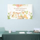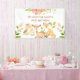Crea el ambiente para un primer cumpleaños mágico con este banner de animales del bosque. Adornado con un búho dulce, ciervo y zorro con coronas florales y suave vegetación en acuarela, es perfecto para la celebración del primer cumpleaños de una niña. Con la frase divertida, este banner personalizable añade un toque encantador a la decoración de tu fiesta con tema de bosque.