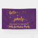 Lona cumpleaños 70 púrpura dorado hola 70 nombre script