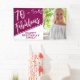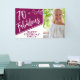 Cumpleaños 70 y fabuloso guion foto magenta 70 cumpleaños banner de fiesta. Tendencia guion blanco y follaje blanco con una foto personalizada en un color rojo magenta vivo y chic. Hacer un fondo de cumpleaños 70 para ella. Personalice con el nombre y la edad y agregue su foto al template.