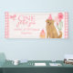 Celebra el gran hito de tu pequeño con este adorable banner de cumpleaños “Un año dorado” que presenta un cachorro de retriever dorado con un sombrero de fiesta, pastelitos, globos y acentos de gingham rosa. Perfecto para el primer cumpleaños de una niña, este banner hace una declaración dulce y festiva detrás de la mesa de postres o en la entrada de la fiesta. ¡Personaliza con el nombre de tu hijo para un detalle de fiesta emotivo y listo para fotos!