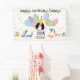 Haz que el cumpleaños de tu Cavalier King Charles Spaniel tri-color sea especial con nuestro adorable diseño de tema canino que incluye un sombrero de fiesta y globos de colores. Personaliza este divertido banner de fiesta de cumpleaños con el nombre de tu perro para una celebración que hará que menee la cola.