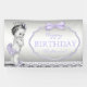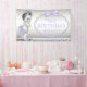 Bandera de cumpleaños de la princesa púrpura con adorable princesa vintage bebé niña que lleva pantalones de volantes lavanda púrpura, corona y lazo sobre un bonito fondo de encaje gris plateado y púrpura con lazo lavanda. Puede agregar el texto de su elección para personalizar esta adorable bandera de cumpleaños de princesa rosa para su ocasión.