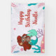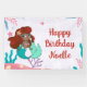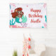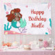 Sirena de piel marrón con cabeza roja en la fiesta de cumpleaños del mar