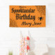 Colgar este Spooktacular banner de cumpleaños de Halloween Spiderweb para celebrar un día súper especial. Personaliza con su nombre. Esta pancarta naranja y negra espeluznante presenta una araña adorable colgando de una telaraña y de los espeluznantes tipos de letra de Halloween.