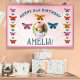 Lona Cumpleaños de niña con flores de mariposa linda pa