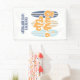 Surf's Up! sube a la playa en una bandera de cumpleaños azul marino y azul claro.