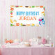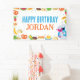 Este colorido cartel de cumpleaños incluye el camión de gourmet Plaza Sésamo con el centro y frente de Cookie Monster, rodeado de galletas y decoraciones festivas. El moderno diseño capta la diversión y el encanto de Plaza Sésamo, lo que lo convierte en la decoración perfecta para un fiesta infantil o una celebración de comida. Personalizable con un toque personal, esta vibrante pancarta prepara el escenario para un evento alegre y memorable.