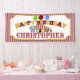 Cartel de cumpleaños de circo/carnaval, divertido y personalizado. Podrá elegir entre habitaciones cubiertas, al aire libre o al aire libre con mangueras metalizado.