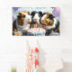 Celebra con estilo este banner de cumpleaños con tres conejillos de indias reunidos alrededor de un colorido pastel de cumpleaños. Rodeado de globos, racimos, flores y regalos envueltos, este alegre diseño capta la diversión y la alegría de una fiesta de cumpleaños con un toque lúdico de conejillo de indias. Perfecto como telón de fondo fiesta o decoración de pared, este banner de cumpleaños de conejillo de indias añade encanto y color a su celebración. Ideal para cualquier día especial de los amantes de las cobayas, es la forma perfecta de hacer que su evento se sienta como en casa.