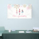 Pancarta de copos de nieve de invierno de invierno de Nacarro, rosa, azul y purpurina de oro.