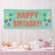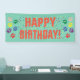 La bandera del fiesta del feliz cumpleaños del perro con la pata del perro imprime la frontera y el fondo colorido del confeti del fiesta. ¡Huéspedes agradables a una fiesta de cumpleaños temática del perro o a una fiesta de cumpleaños para un perro particular!