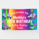 Banner de la fiesta de cumpleaños de patinaje sobre patinaje retro de colores vivos, con un fondo de color arcoiris llamativo, una variedad de piernas con patines de rodillos y una plantilla de pancarta que incluye el nombre y la edad de los niños.