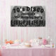 Una divertida y espeluznante pancarta de cumpleaños con temática Disco de los años 70 en negro y plata. Gente bailando con un fondo fresco de purpurina plateado y un texto de los años 60 / 70 / 80. Todo el texto puede ser personalizado por ejemplo "fiesta de cumpleaños", "cumpleaños feliz", nombre y edad, etc.