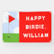 Creativo fiesta temático de golf o banner de evento para celebración de cumpleaños feliz o torneo grande. Para personalizar el texto de edición para añadir el nombre del jugador.