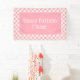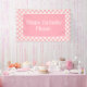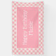 El banner "Happy Birthday", personalizado de una niña pequeña, con un diseño de gingham rosa y blanco. Personalice con el nombre de su hijo.