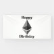 Este banner presenta las palabras "Feliz Cumpleaños" en una fuente de letra negrita con letras negras y contorno gris que muestra un icono de ethereum en el centro en este tema y estilo de cumpleaños de criptomoneda. Este banner tiene impresión en un solo lado, medidas seguras para exteriores de 4 "x8", hecho con un acabado mate elegante y es resistente tanto a la decoloración como a los desgarros para uso en interiores o exteriores, ideal para anunciar cualquier cosa, desde cumpleaños hasta graduaciones, bodas y aniversarios. Bordes doblados y soldados térmicamente para un acabado limpio, los banners para exteriores se pueden comprar con ojetes metálicos.