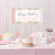 Lona Cumpleaños Feliz Madera Floral Rosa Verde Sabio Rú