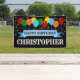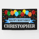 Banner de vinilo alegre y colorido para tu celebración de cumpleaños! Este diseño presenta una divertida selección de globos de color primario (rojo, verde, azul, amarillo y naranja) con un cartel azul de "feliz cumpleaños".