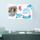 Bandera de Cumpleaños Foto Animales Marinos Delfín Lindo. Delfines sonrientes lindos en estilo caricatura. La foto está en un marco de pinceladas. Agrega tu foto y personaliza el texto en la bandera. Bandera de cumpleaños divertida y linda para una celebración de niña o niño.