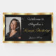 Hermoso banner para la fiesta de cumpleaños número cuarenta. Borde elegante de lámina dorada y texto con purpurina. Agrega tu foto favorita y personaliza con el nombre y la fecha de tu cumpleañera.