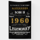 Diga Feliz cumpleaños a los nacidos en 1960. Agregue el nombre a este cartel de cumpleaños retro de impresión de estilo vintage. Edite el nombre y el año con la plantilla proporcionada. Una maravillosa pared de cumpleaños negra personalizado colgada con tipografía de estilo vintage blanco y dorado. Más regalos y suministros de fiesta disponibles con el diseño "Legendario" en la tienda.