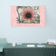 Este impresionante cartel muestra una hermosa fotografía de un girasol rosa pálido. El girasol es de color rosa natural y los pétalos tienen un anillo exterior rosa pálido y un anillo interior rosado más oscuro. El medio donde están las semillas es negro. Esta fotografía fue tomada en un jardín.