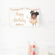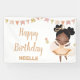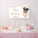 Cumpleaños! Princesa Negra Ballerina con pancarta de arco y purpurina brillante, estrellas y remolinos.