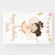 Cumpleaños! Princesa Ballerina con pancarta de arco y purpurina brillante, estrellas y remolinos.
