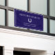 Custom Blue Equestrian Stall Horse Show Banner, replace the horse shoe graphic with your own logo if you like and change the colors in the design tool if needed.