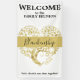 Be sure to offer a warm welcome at your next family reunion with vertical format banner featuring a gold heart shaped tree. Personalize all the text, remove the year so you can use it annually, or click customize to select a font style, size, and color. At checkout, you can select items to help hang or mount your banner so it’s ready for display after arriving in the mail.