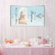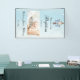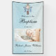 Blue abstract watercolor background denoting the pure water and a wooden cross with pink flowers & blue cloth.