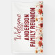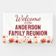 Set the perfect tone for your family reunion with this stunning custom welcome banner! Designed for gatherings big and small, this elegant horizontal banner features a clean white background with warm, rustic watercolor florals in shades of red, orange, and gold blooming along the bottom edge. The focal point is the bold, classic typography in deep burgundy, spelling out your personalized welcome message.