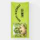 Create a fun and cheerful party with this adorable baby Dinosaur jungle banner! Featuring a smiling hatchling Dinosaur surrounded by lush greenery, this design brings a playful prehistoric vibe to a child's birthday party! It has a curved "Happy Birthday" wish and a place for a name -- both of which can be customized. They can say whatver you wish to change them to!